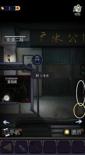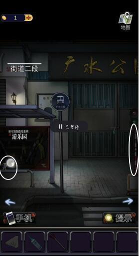 2、来到街道二段的广水公园门口,点击左下角和右边的位置,获得【人偶】和【纸条碎片】。