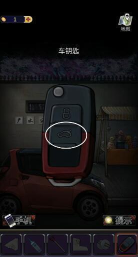 10、点击车钥匙上的后备箱按钮,获得【铲子头部】。