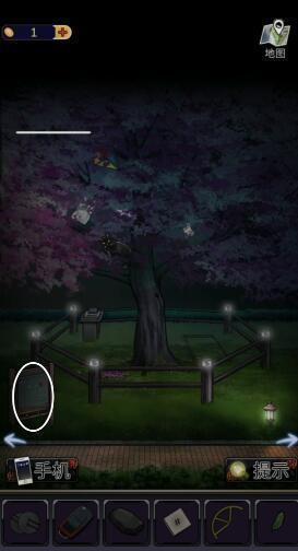 24、来到樱花树下,点击白圈位置,获得【塑料棒】。