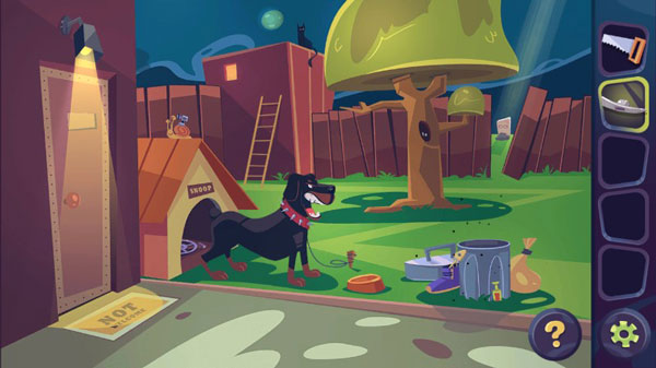 4、将骨头给狗,顺利进入狗圈,发现一个机关,打开即可通关。