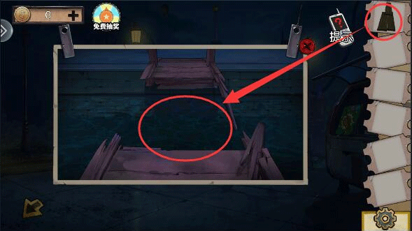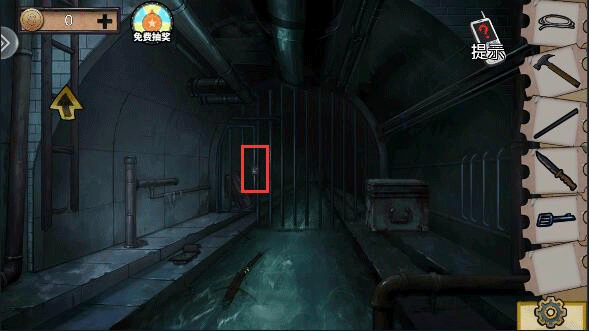 6、然后我们回下水道,用钥匙打开如图所示的锁,获得木板后去警卫室,用小刀划开垃圾桶,使用夹子即可得到湿纸片,放在警卫室灯上烘干即可获得下水道密码箱密码。