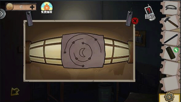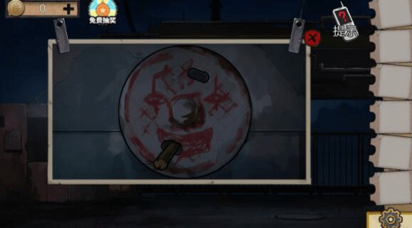 用小刀割开门上面左边的画,拿到牌子。(再用斧头劈开树,看到右边画上的符号。