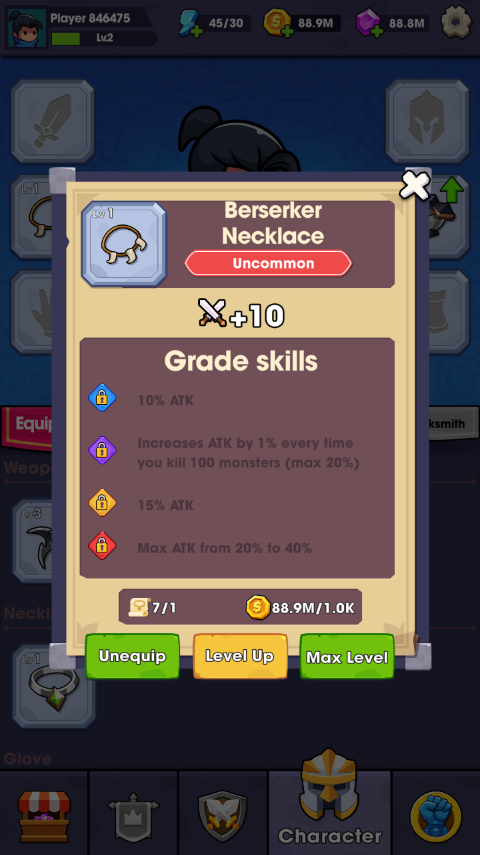 当力为10%时,每杀死100个怪物,力提高1%(最大20%),当力为15%时,最大力从20%提升至40%。