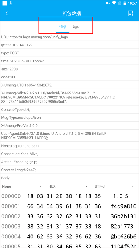 2、Hex视图:以Hex的形式查看请求/响应体内容。