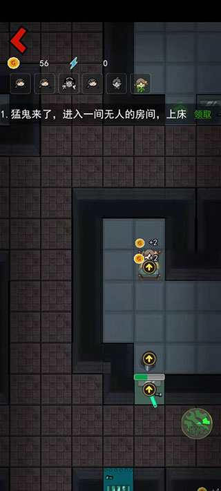 2、进入房间后直接上床,通过睡觉涨金币,建造装备,无论发生什么事千万不能下床,如果有怪人破门而入,也不要下床。