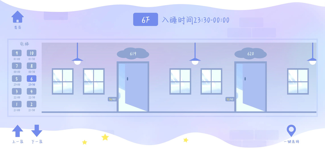 选择你的楼层并进入房间,然后预定床位,设置好模式,时间,并且按时上床按时起床就可以了,不同模式下的所赚得的co币是不一样的,自习也是一样。所以需要注意。