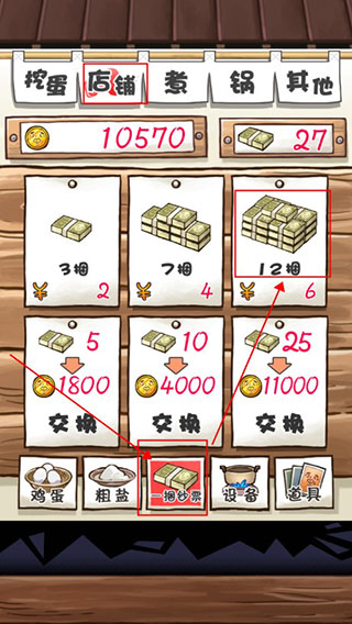 3、游戏中的鸡蛋、盐和锅等道具都可以购买或者解锁,集齐一锅指定的大叔,就可以开启另外的锅。
