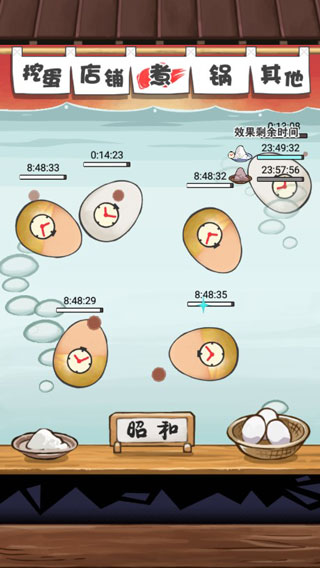 这个游戏的玩法非常的简易,只需要把鸡蛋丢入沸腾的水里,慢慢等待时间,“15分”、“30分”、“1小时”、“3小时”、“6小时”以及“9小时”。玩这游戏的玩家需要做好耐性。