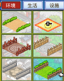 环境类建筑包含道路、植物和住宅三部分。道路连接着各类建筑,需要注意的是未铺设道路的地方市民和旅行团是无法抵达的,在那里即使建设建筑也无法获得收益。道路包含五个种类分别是田间小道、木板路、石板路、碎石路和草坪,从前到后道路的收益逐渐提高。