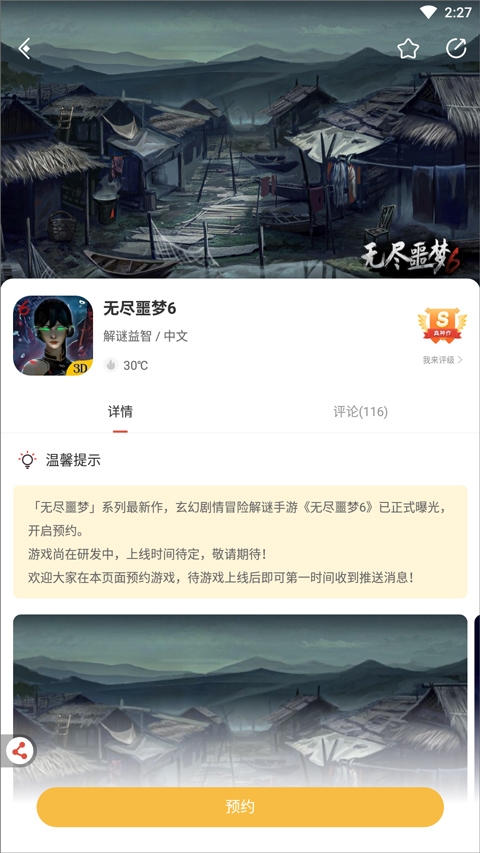 《无尽噩梦6》已于2023-04-07正式开启预约,上线时间官方尚未发布。