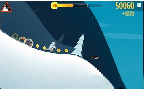 如果雪追不是很紧的话可以来个后空翻吃金币,摔倒也没事,不过中后期雪崩加紧的话就不行了,尽量选择下坠加速