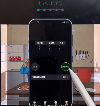 5、点击桌子上的闹钟,将时间调到半个小时后,再去开门。
