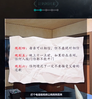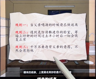 6、点击桌上的纸条查看规则,再点击爸爸。