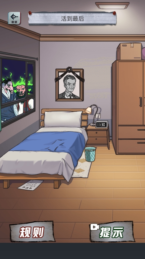 2、游戏中开头基本上都是要找纸条看规则的,所以点击后面墙上的纸条查看规则吧。