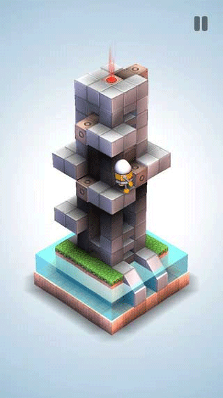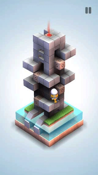 翻转视角,将上面的机关移动到下面,到达上面的台阶。