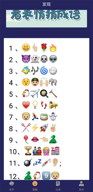 4、玩家在发现界面中还可以挑战有趣的看表情猜成语
