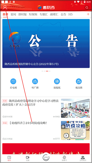 1、下载安装好看陇西客户端,进入软件点击如图所示。