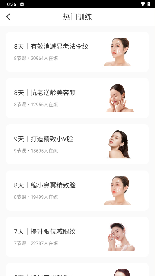 4、软件为大家准备了最全面的免费面部按摩技巧,而且可以根据个人的脸部情况定制专属瑜伽技巧。