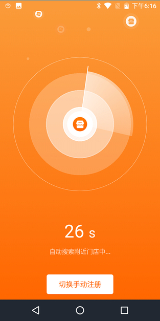 1、点击启动点菜宝2.0,进入登录扫描页30S倒计时自动搜索附近店铺信息,如图