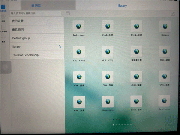 3、最后登陆进去就可以在左侧library处看到学校的资源库啦,选择自己需要的网页点击进入就可以咯