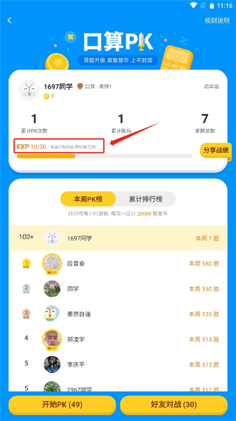 6、在这里对战连赢3局才可以获得智慧币哦。