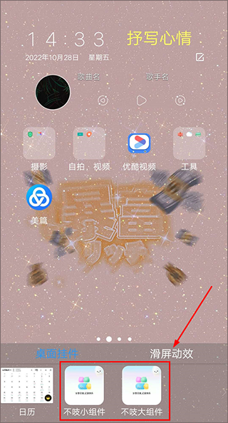 2、在桌面挂件选项里查找【不吱】组件;