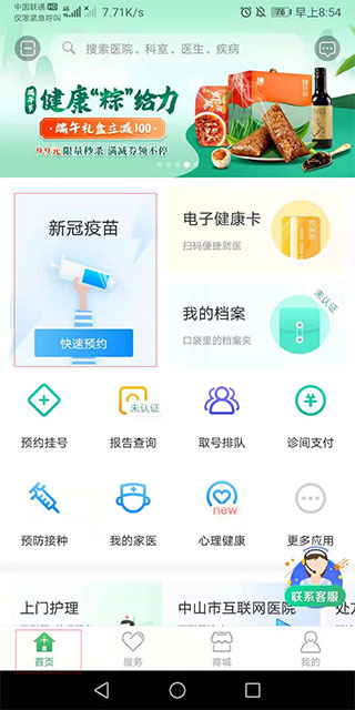 中山健康通、社保卡等卡管理。还可以关联的亲友信息,帮助亲友预约挂号。