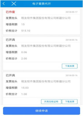 待开状态为“已开具”的代开记录将会显示【下载发票】按钮,点击此按钮您可以下载/分享电子发票文件。