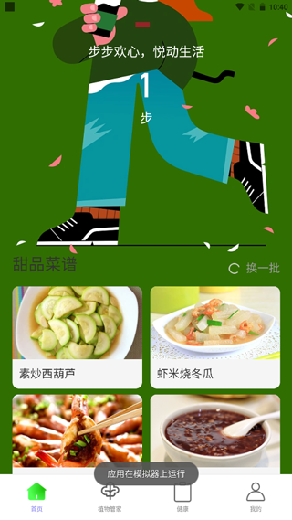悦漫步app官方版是一款由广州吉树网络科技有限公司推出的让你的生活步步高升,充满健康与活力的应用,其主要功能包括步数统计、甜品菜谱、养生指南、植物管家等。其中步数统计可以实时记录用户每天的运动步数,无论是走路、跑步还是其他形式的运动,都可以被准确记录并保存在软件中,并且用户可以随时查看自己的运动数据,了解自己的运动状态。另外应用中的菜谱和养生方面,通过食疗养生、运动养生等方面,以及根据自己的需求选择适合自己的养生方法,提高自己的生活质量。特别是应用中还有一此健康类的甜品自制教程可以帮助用户们自己在家就可以做出来,有需要的用户可以在本站免费下载使用。