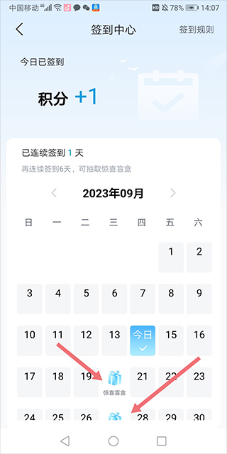 ②连续签到7天即可解锁惊喜盲盒奖励