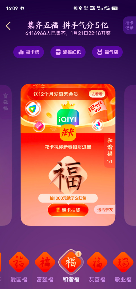 3、多余的福卡不要随便乱赠送,保留下来和自己的亲朋好友交换自己没有的福卡。