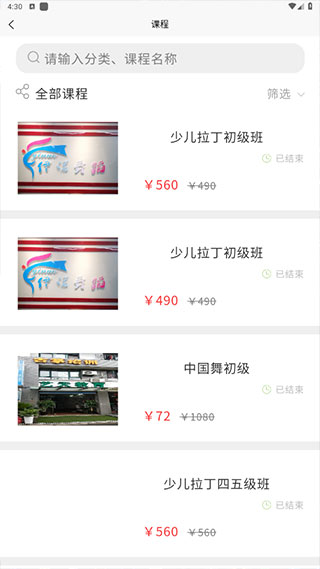 5、主页中支持家长搜索名称查找课程,新的消息会及时通知到手机,及时查看。