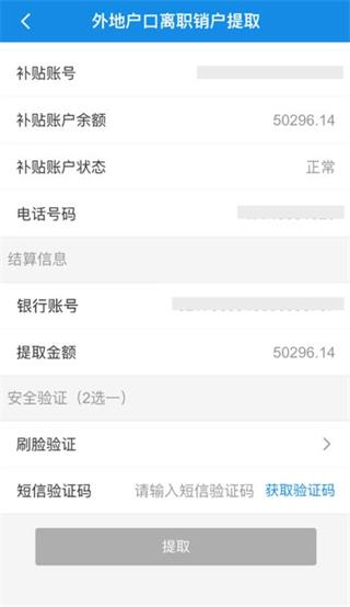 5、核对信息无误后输入提取金额,然后进行安全验证 (刷脸验证或短信验证),验证完成后点击【提取】。