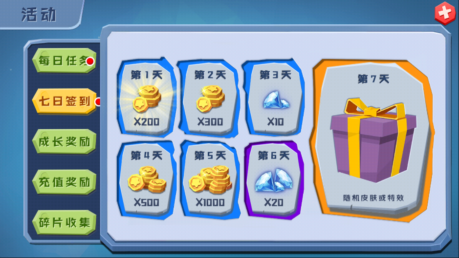 3、不过可以进入主界面的活动页-【七日签到】,连续登入一周会有随机皮肤或者特效的哦!