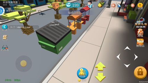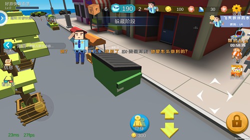 1、游戏开始后,我们会随机变成一个物品,然后按住屏幕左下角的按钮移动,滑动屏幕可以控制视角和身体旋转,在倒计时结束前,我们要找到一个合适的位置,然后点击右下角的“锁”按钮停下来,这样我们就能躲在这个位置了。