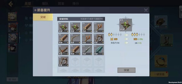 判断一件装备的品质,需要考量三个方面的因素,分别是稀有度、T段和星级。稀有度分为普通、精良、稀有、史诗和传奇,其中普通为最常见稀有度的装备,传奇为最高稀有度的装备。T段则代表了游戏的进程,随着玩家们对神角世界的探索度逐渐提升,也就会相应获得属性更强的装备。T段一共有6个等级,从T1到T6。最后是星级,每一件装备都可以通过突破来升星,突破只需要消耗相同品质的装备和一定数量的美索多(游戏货币),不需要消耗其它材料。