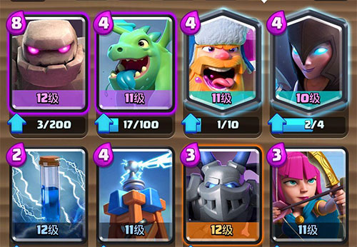 第三种就是带电塔的用这套的时候尽量不要主动出击,利用电塔+重甲亡灵+暗夜女巫构成的三角防御线,来赚取费用差,尽量拖到对己方极为有利的双倍圣水的时间即使双方的防御塔血量差很大也不要灰心,暗夜女巫和樵夫的推进能力,一定会让你大吃一惊的。
