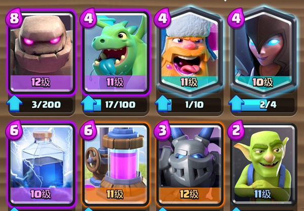 相信很多人都被石头人和暗夜女巫,这样的推进组合直接一波过,虽然此时也是时过境迁,但是高血量的石头人和一个人就能推掉一个塔的暗夜女巫,再加上樵夫的狂暴,即使现在也是一个非常强的组合,由于暗夜石头人的种类有点多,但是大多数的核心都是以,石头人+暗夜女巫+狂暴樵夫的组合,所以今天,我就为大家带来三套以此为核心的卡组。