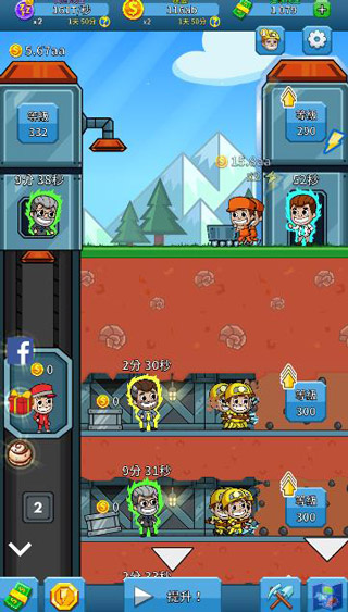 3、升级到5级的时候,大家就可以雇佣经理了,矿区经理,电梯经理和地面经理,都是一百金币,经理的作用就是一直监督工人干活,可以使玩家们不用一直点击工人干活,这个时候挂机他们也会自动干活。随着矿区2的开采,经理的雇佣价格也会相应的变高。矿屋1等级为10的时候,地下的矿中就会出现两个黄色衣服的矿工,一次可挖94个金币的矿石。