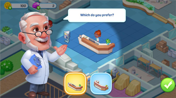 4、装饰你的医院,你可以设计不同风格的设备来创建自己的医院;