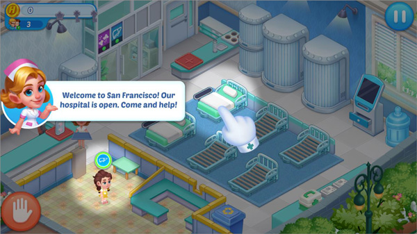 2、第一关玩家获得的星星可用来购买医院的新家具,重新装饰医院;