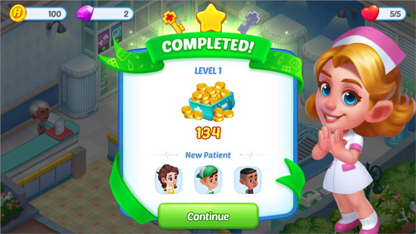 5、病人治疗走了之后,玩家还可以控制护士整理病床上的东西,完成关卡任务即可通关,通关后玩家可获得相应的金币奖励。