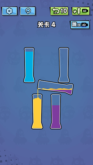 4、所有相同颜色的液体都在同一玻璃杯中,即可过关!