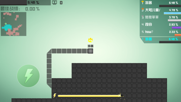3、在玩法上非常简单,游戏开始后玩家只能拥有极小的一块领地,而角色则会从这块领地出发自行移动,玩家可以通过上下左右四个方向滑动屏幕的方式来控制角色的运动方向,当再次回到自己领地时移动轨迹所圈出的地盘就是自己的了,同时这块地盘也会变成同原始领地一样的颜色。圈占领土的多少并没有限制,玩家可以无限圈占,但同时也要提防自己的领土被他人侵占,由此一场围城大作战便激烈的开始了。