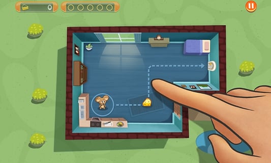 这款游戏的场景设计还是非常精致的,画面很有迪士尼动画的感觉。游戏每个小关卡是按照在本场景里面的路线排布的,大家看到的已经是小编解锁之后的关卡全貌了,实际上玩家在游戏的时候,只能在完成第一个关卡之后才能依次进行后面的游戏。下面就跟随小编一起看一下如何让这只小老鼠每关都轻松地躲过喵星人的看守,顺利的偷吃到奶酪吧。
