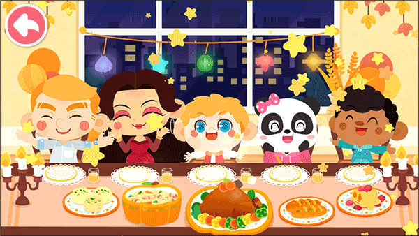 一年一度的感恩节到了,宝宝知道该做哪些准备吗?少不了火鸡大餐!将整只鸡塞好苹果等配料,再刷上秘制的迷迭香酱汁,放入烤箱烘烤。哇,香喷喷的火鸡出炉啦!