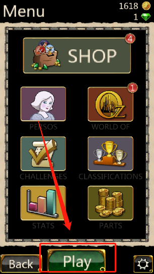 点击开始就可以直接进入游戏画面,同时玩家点击菜单按钮可以进入任务道具页面,了解各种任务和购买道具