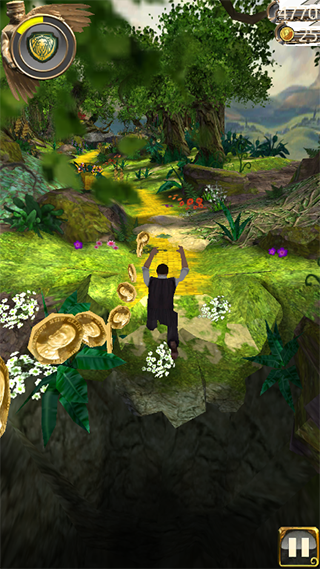 temple run魔境仙踪是系列经典跑酷类游戏神庙逃亡的其中一个作品,游戏在延续前作的经典玩法之外,带来了全新的空中热气球和会空袭的飞天狒狒等多样化的玩法。在游戏中玩家将扮演电影中的主角马戏团魔术师奥兹,通过转弯、跳跃和滑行来逃脱恶魔的追捕,游戏的玩法与前几代的Temple Run一致,当然电影中的剧情说的是奥兹误闯“魔境”奥兹国,被误认卷入魔方斗争中,唯有成长为真正的魔法师才可以与敌对势力对抗。在本作中又多了热气球供大家乘坐,一路逃命的同时不要忘了走马观花欣赏一路上珍贵的风景线,毕竟魔幻风格的新环境才是大家能够继续奔跑下去的动力。
