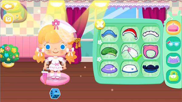 8、在卧室里点击糖糖,就能为她挑选并换上你喜欢的衣服了。
