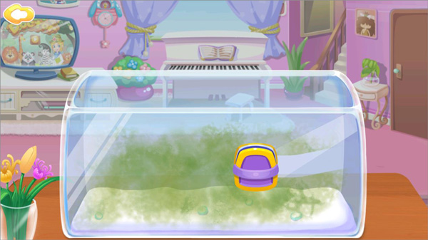 5、然后再陪哥哥玩一局钓鱼游戏,鱼缸好像很久没有清理过了,快用刷子把它擦干净吧,这样小鱼也有个干净的家啦;